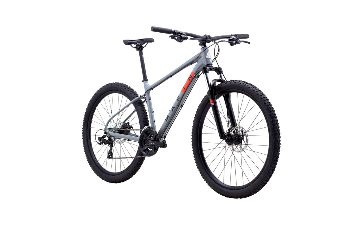 Product | The Bolinas Ridge is perfectly suited for recreational riders wishing to explore singletrack and dirt trails with a mountain bike built for real trails, with trail capable suspension forks and all-conditions disc brakes. The Bolinas Ridge family of mountain bikes are designed for the recreational mountain biker looking to explore the local singletrack or dirt paths. Utilizing our lightweight Series 1 aluminum alloy frames, 100mm travel suspension forks, and reliable Shimano drivetrains, these bikes are capable of tackling real trails and pushing your own boundaries. Size-specific 27.5" or 29" wheels, disc brakes, and 2.25" MTB tires mean comfort, traction, and control through any rough terrain. Get outside and explore with the Marin Bolinas Ridge. Frame: Series 1 6061 Aluminum, 27.5" /29" Wheels, Low Standover, 68mm BB shell, 135mm Forged Dropouts, Chainstay Mounted Disc Brakes Fork: SR Suntour XCE Disc, 100mm Travel, Preload Adjustment, 46mm Offset Headset: FSA No.10-P Stem: Marin Alloy, 31.8mm, 45mm Handlebar: Marin 31.8 Riser, 12mm Rise, 780mm Width Grips: Marin MTB, Closed End Brake Levers: Shimano w/ Integrated Shifters Brakes Front: Clark's CMD-23 Mechanical Disc, Shimano Pad Compatible, 160mm Rotor Brakes Rear: Clark's CMD-23 Mechanical Disc, Shimano Pad Compatible, 160mm Rotor Tires: MTB, 27.5/29x2.25" Rim: Marin, Double Wall Alloy Hub Front: Forged Alloy, Disc, 32H Hub Rear: Forged Alloy, Disc, 32H Spokes: Black Stainless Steel Derailleur Front: Shimano FD-TX500 Derailleur Rear: Shimano Tourney, 7-Speed Shift Lever: Shimano Tourney 3x7-Speed Chain: KMC Z8 Cassette: SunRace 7-Speed, 11-34T Crankset: Alloy Crank, Steel Chainrings, 42/34/24T Bottom Bracket: Sealed Cartridge Bearings, Square Taper Pedals: Nylon Platform Saddle: Marin MTB Seatpost: Marin Alloy, 27.2mm |
