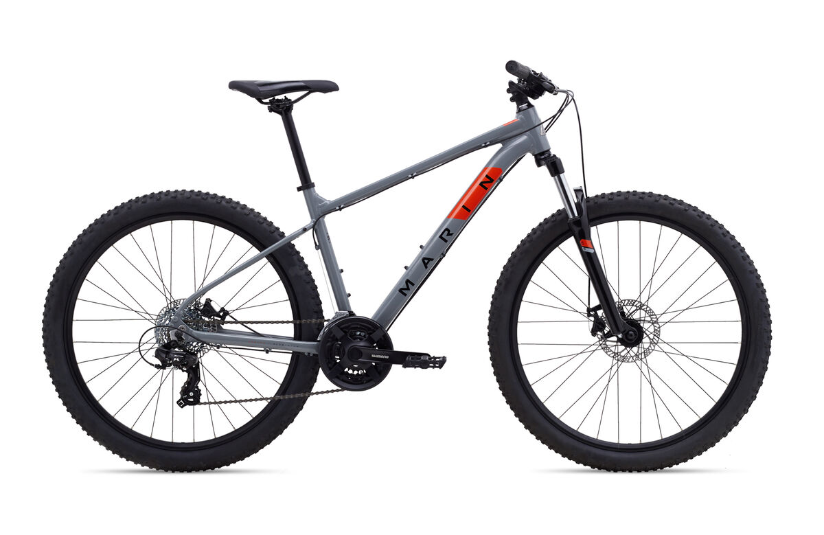 Product | The Bolinas Ridge is perfectly suited for recreational riders wishing to explore singletrack and dirt trails with a mountain bike built for real trails, with trail capable suspension forks and all-conditions disc brakes. The Bolinas Ridge family of mountain bikes are designed for the recreational mountain biker looking to explore the local singletrack or dirt paths. Utilizing our lightweight Series 1 aluminum alloy frames, 100mm travel suspension forks, and reliable Shimano drivetrains, these bikes are capable of tackling real trails and pushing your own boundaries. Size-specific 27.5" or 29" wheels, disc brakes, and 2.25" MTB tires mean comfort, traction, and control through any rough terrain. Get outside and explore with the Marin Bolinas Ridge. Frame: Series 1 6061 Aluminum, 27.5" /29" Wheels, Low Standover, 68mm BB shell, 135mm Forged Dropouts, Chainstay Mounted Disc Brakes Fork: SR Suntour XCE Disc, 100mm Travel, Preload Adjustment, 46mm Offset Headset: FSA No.10-P Stem: Marin Alloy, 31.8mm, 45mm Handlebar: Marin 31.8 Riser, 12mm Rise, 780mm Width Grips: Marin MTB, Closed End Brake Levers: Shimano w/ Integrated Shifters Brakes Front: Clark's CMD-23 Mechanical Disc, Shimano Pad Compatible, 160mm Rotor Brakes Rear: Clark's CMD-23 Mechanical Disc, Shimano Pad Compatible, 160mm Rotor Tires: MTB, 27.5/29x2.25" Rim: Marin, Double Wall Alloy Hub Front: Forged Alloy, Disc, 32H Hub Rear: Forged Alloy, Disc, 32H Spokes: Black Stainless Steel Derailleur Front: Shimano FD-TX500 Derailleur Rear: Shimano Tourney, 7-Speed Shift Lever: Shimano Tourney 3x7-Speed Chain: KMC Z8 Cassette: SunRace 7-Speed, 11-34T Crankset: Alloy Crank, Steel Chainrings, 42/34/24T Bottom Bracket: Sealed Cartridge Bearings, Square Taper Pedals: Nylon Platform Saddle: Marin MTB Seatpost: Marin Alloy, 27.2mm |