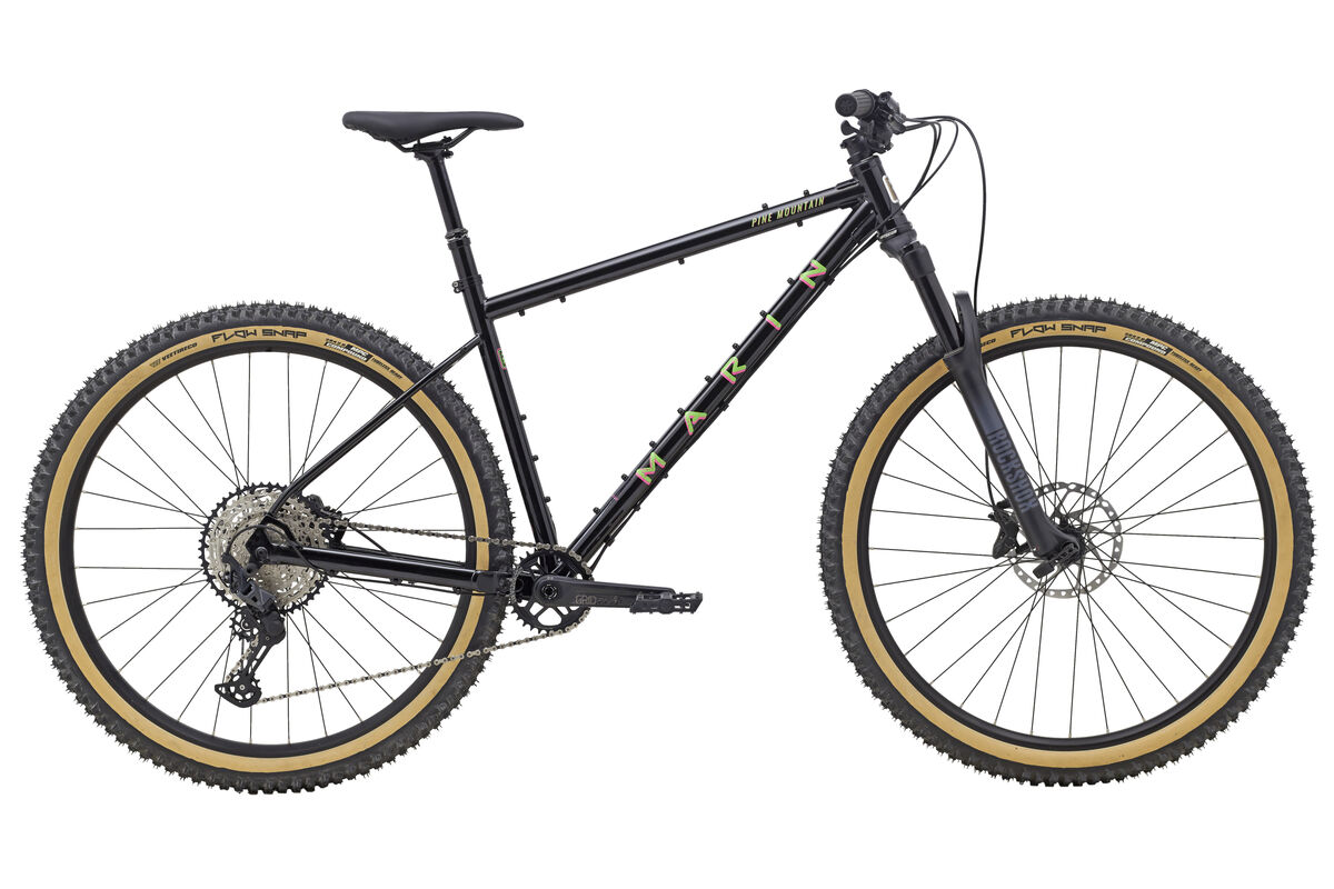 Product | The Pine Mountain is a classic steel hardtail with modern trail capabilities for hardtail purists pushing the limits and seeking adventure. The Marin Pine Mountain is a fresh take on what an adventure trail bike should be capable of. The Series 2 and Series 3 CrMo frames have been constructed around 29x2.6" wheels/tires, with geometry blending the stability and raucous fun of aggressive trail geometry with all day comfort and pedalability for a wide variety of trail. A plethora of eyelets on the frame and the Bedroll Bar let you customize your bike and gear to each and every adventure, and wide-range drivetrains and sturdy trail suspension forks make sure you can get out and back with a smile and a story worth telling. Frame: Series 3 Double Butted and Heat Treated CrMo, 29" Wheels, Custom Cast Boost 148x12mm Dropouts, 148x12mm Thru-Axle, 73mm Threaded BB, Plentiful Gear Mounts Fork: RockShox 35 Gold RL, 120mm Travel, DebonAir, Alloy Tapered Steerer, 110x15mm Boost Spacing, Maxle Lite, 44mm Offset Headset: FSA Orbit ITA, Sealed Cartridge Bearings, 1 1/8" x 1 1/2" Stem: Marin 3D Forged Alloy, 35mm Handlebar: Marin Bedroll Bar, 50mm Rise, 780 Width, 10? Backsweep, 6? Upsweep Grips: Marin Grizzly Lock On Brake Levers: TRP Slate EVO Brakes Front: TRP Slate EVO, 4-Piston, Hydraulic Disc, 180mm Rotor Brakes Rear: TRP Slate EVO, 4-Piston, Hydraulic Disc, 180mm Rotor Tires: Vee Tire Flow Snap, 29x2.6", Top 40 Compound, Enduro Core, 90 TPI, Tubeless Compatible Rim: Alloy Double-Wall, Offset Spoke, 32mm ID, Tubeless Compatible Hub Front: Forged Alloy, 110x15mm, Sealed Cartridge Bearings, Disc Specific, 32H Hub Rear: Shimano, Micro Spline 148x12mm, Disc Specific, 32H Spokes: 14g Black Stainless Steel Derailleur Rear: Shimano SLX, RD7100, 12-Speed Shift Lever: Shimano SLX, SL7100, 12-Speed Chain: KMC X12 Cassette: Sunrace, 12-Speed, MicroSpline, 10-51T Crankset: FSA Grid, Modular 1x, 32T Direct Mount MegaTooth Chainring Bottom Bracket: FSA Outboard Cartridge Bearings Pedals: Nylon Platform Saddle: Marin Pine Mountain Trail Seatpost: TranzX, YSP23JL, 1x Remote, Size S 125mm Travel, All Other Sizes 150mm Travel, 30.9mm |