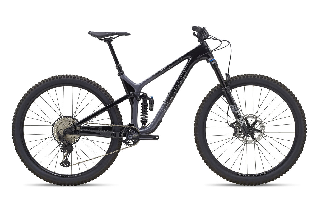 Product | The Rift Zone is our most speed oriented MultiTrac bike, created for the rider looking for the speed and roll over capabilities of 29" wheels in a trail capable package. The Rift Zone represents the most modern 29" short travel trail bike possible featuring 125mm of MultiTrac suspension and progressive geometry that takes full advantage of decades of trail riding experience to create best-in-class handling, both in and out of the saddle. The Rift Zone is available with a carbon fiber or aluminum front triangle and is an ideal bike for mixing it up between long trail days in the saddle and fast weeknight group rides. Frame: All New Unidirectional Carbon Fiber Front Triangle, Series 4 Alloy Rear End, 29" Wheels, 140mm Travel, MultiTrac Suspension Platform, 148x12mm Boost Thru-Axle, 73mm Threaded BB w/ ISCG05 Tabs Rear Suspension: Rock Shox Super Deluxe Ultimate, 210x55mm, 25xM8 Hardware, Custom Tune Fork: Rock Shox Lyric Ultimate, 150mm Travel, 29", 110x15mm Maxle Stealth, 44mm Offset Headset: FSA No 57, Sealed Cartridge Bearings, 1 1/8" x 1 1/2" Stem: Marin CNC Stem, 35mm Length, 35mm Bar Bore Handlebar: Marin Trail Bar, 35mm Clamp, 7000 Alloy Bar, 800mm Length, 20mm Rise, 5 Degree Up, 8 Degree Back Grips: Marin Grizzly Lock-On Brake Levers: Sram Code Bronze Hydraulic Disc Brakes Brakes Front: Sram Code Bronze 4-Piston Hydraulic Disc Brakes, HSC 200mm Rotor Brakes Rear: Sram Code Bronze 4-Piston Hydraulic Disc Brakes, HSC 180mm Rotor Tires: Maxxis Assegai 29x25, MAXX GRIP, EXO+ Casing, Tubeless Compatible Rim: Marin Aluminum Double Wall, 29mm Inner, Welded Joint, Disc Specific, Tubeless Compatible Hub Front: Formula, DC-711, 110x15mm, 6-Bolt Disc, 32h Hub Rear: Formula, DCL-3482, 148x12, 4 Sealed Bearings, 6-Bolt Disc, XD Driver, 32H Spokes: 14g Black Stainless Steel Derailleur Rear: Sram GX EAGLE AXS T-Type Shift Lever: Sram AXS POD MMX Chain: Sram GX Eagle T-Type Cassette: Sram GX 1275 T-Type 10-52T Crankset: Sram GX Eagle, 32T, 55MM CL, 170MM Length Bottom Bracket: Sram DUB MTB 73 Pedals: - Saddle: Marin Speed Concept Seatpost: TranzX, YSP23JL, 1x Remote, Size S 150mm Travel, Size M and L 170mm Travel, Size XL 200mm Travel, 30.9mm Extra1: Bolt-On 12mm Thru-Axle, 174mm Length, 1.0 Thread Pitch, 16.5mm, Tapered Head |