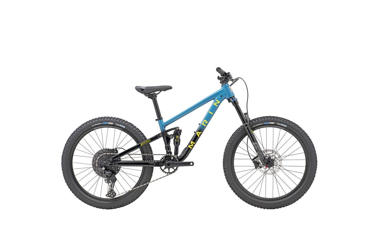 Product | Full Suspension JR. Little Mountain Bikes for Little Mountain Bikers Riding a bike is fun, and having fun on the trail was at the front of our minds when creating the Rift Zone 27.5. Built around our MultiTrac suspension system, the Rift Zone 27.5 is our most playful and fun short travel suspension trail bike to date. Entry level through to high-performance spec, everyone can fall in love with mountain biking over and over again with the Rift Zone 27.5. Frame: Series 3 6061 Aluminum, 24" Wheels (fits up to 26"), 130mm Travel, MultiTrac Suspension Platform, 148x12mm Boost Thru-Axle, 73mm Threaded BB w/ ISCG05 Tabs Rear Suspension: X-Fusion O2 Pro R, 190x45mm, Custom Tune, M8x22.2mm Hardware Fork: X-Fusion Velvet RLC 26", 130mm Travel, Compression and Rebound Adjustment, 100x15mm Thru-Axle Headset: FSA No 57E, Semi-Sealed Cartridge Bearings, 1 1/8" x 1 1/2" Stem: Marin 3D Forged Alloy, 35mm Handlebar: Marin Mini-Riser, 6061 Double Butted Aluminum, 12mm Rise, 720mm Width, 4º Up, 9º Back Grips: Marin MTN, Closed End Brake Levers: Tektro HD-M280 Brakes Front: Tektro HD-M280 Hydraulic Disc, 180mm Rotor Brakes Rear: Tektro HD-M280 Hydraulic Disc, 180mm Rotor Tires: Vee Tire Co, Flow Snap 24x2.4", Tackee Compound, Wire Bead Rim: Marin, Double Wall Alloy, 27mm Inner, Pinned Joint, Disc Specific, Tubeless Compatible Hub Front: Forged Alloy, 100x15mm, Centerlock Disc, 32H Hub Rear: Forged Alloy, 141mm, Quad Sealed Bearings, Centerlock Disc, 32H Spokes: 14g Stainless Steel Derailleur Rear: Shimano Deore, 11 Speed, SGS Shift Lever: Shimano Deore, 11-Speed, SL-5100R Chain: KMC X-11 Silver and Black Cassette: SunRace, 11-Speed, 11-51T, ED Black Crankset: Marin Forged Alloy 1x11, Hollow Spindle, Steel Narrow Wide 32T Chainring, Direct Mount Type, 152mm Crank Length Bottom Bracket: External Sealed Cartridge Bearings Pedals: - Saddle: Marin Speed Concept Seatpost: Marin Alloy, 30.9mm |