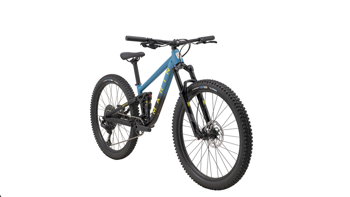 Product | Full Suspension JR. Little Mountain Bikes for Little Mountain Bikers Riding a bike is fun, and having fun on the trail was at the front of our minds when creating the Rift Zone 27.5. Built around our MultiTrac suspension system, the Rift Zone 27.5 is our most playful and fun short travel suspension trail bike to date. Entry level through to high-performance spec, everyone can fall in love with mountain biking over and over again with the Rift Zone 27.5. Frame: Series 3 6061 Aluminum, 26" Wheels, 130mm Travel, MultiTrac Suspension Platform, 148x12mm Boost Thru-Axle, 73mm Threaded BB w/ ISCG05 Tabs Rear Suspension: X-Fusion O2 Pro R, 190x45mm, Custom Tune, M8x22.2mm Hardware Fork: X-Fusion Velvet RLC 26", 130mm Travel, Compression and Rebound Adjustment, 100x15mm Thru-Axle Headset: FSA No 57E, Semi-Sealed Cartridge Bearings, 1 1/8" x 1 1/2" Stem: Marin 3D Forged Alloy, 35mm Handlebar: Marin Mini-Riser, 6061 Double Butted Aluminum, 12mm Rise, 720mm Width, 4º Up, 9º Back Grips: Marin MTN, Closed End Brake Levers: Tektro HD-M280 Brakes Front: Tektro HD-M280 Hydraulic Disc, 180mm Rotor Brakes Rear: Tektro HD-M280 Hydraulic Disc, 180mm Rotor Tires: Vee Tire Co, Flow Snap 26x2.4", Tackee Compound, Wire Bead Rim: Marin, Double Wall Alloy, 27mm Inner, Pinned Joint, Disc Specific, Tubeless Compatible Hub Front: Forged Alloy, 100x15mm, Centerlock Disc, 32H Hub Rear: Forged Alloy, 141mm, Quad Sealed Bearings, Centerlock Disc, 32H Spokes: 14g Stainless Steel Derailleur Rear: Shimano Deore, 11 Speed, SGS Shift Lever: Shimano Deore, 11-Speed, SL-5100R Chain: KMC X-11 Silver and Black Cassette: SunRace, 11-Speed, 11-51T, ED Black Crankset: Marin Forged Alloy, Integrated Steel 32T Narrow Wide Chainring, Boost Spacing, 170mm Length Bottom Bracket: External Sealed Cartridge Bearings Pedals: - Saddle: Marin Speed Concept Seatpost: Marin Alloy, 30.9mm |
