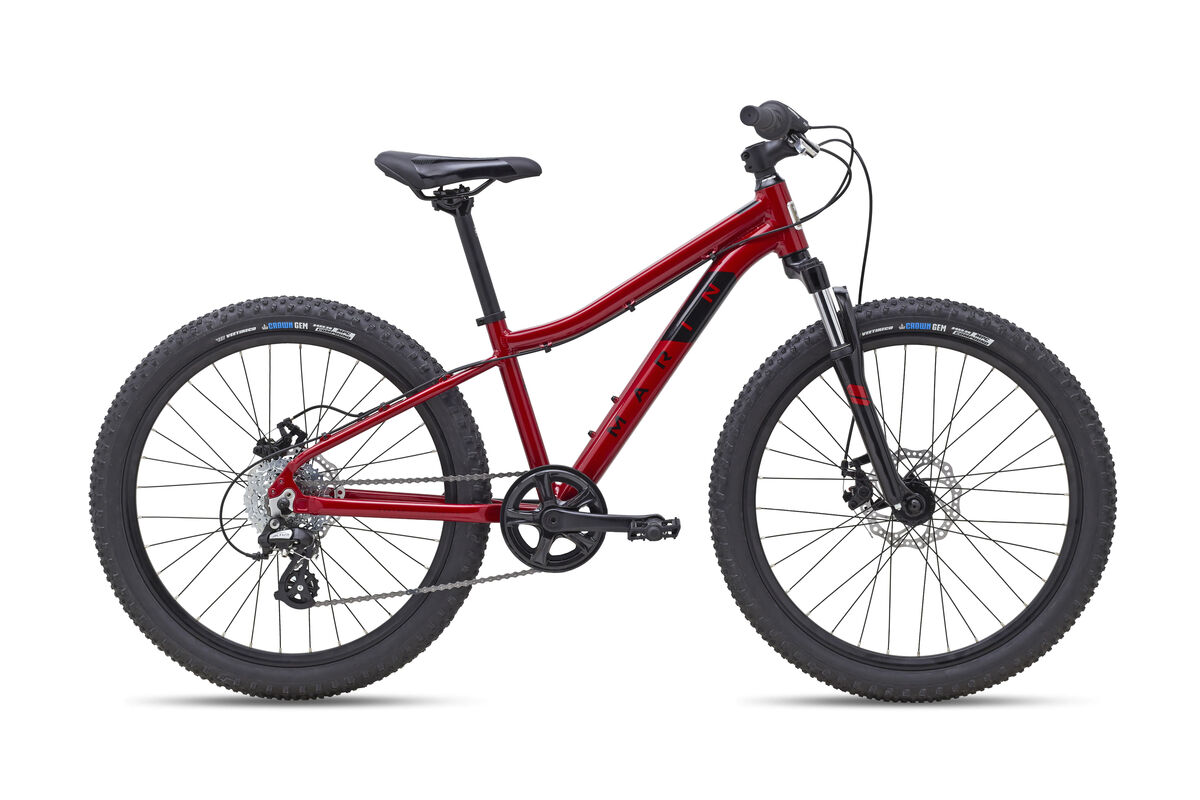 Product | The Bayview Trail 24" bikes are built to get kids hooked on riding with quality components and fun graphics that will last for years of neighborhood and bike park service. Ready to show the kids the trails - and end up chasing them down their first real singletrack? Kids love the Bayview Trail 24" for the fun ride and exciting looks. Parents love them for the details that set them apart from the rest: lightweight aluminum frames, suspension forks, disc brakes, and durable component choices. Frame: Series 1 6061 Aluminum, 24" Wheels, IS Seatstay Disc Mount, 135mm Dropouts Fork: SR Suntour XCT Jr 24", Pre-Load Adjust Coil Spring, 50mm Travel Headset: FSA No. 10P Stem: Marin Alloy, 40mm Handlebar: Marin Riser, 30mm Rise, 580mm Width Grips: Marin Dual Density Brake Levers: Kids Specific Short Reach Alloy Lever Brakes Front: Clark's CMD-23 Mechanical Disc, Shimano Pad Compatible, 160mm Rotor Brakes Rear: Clark's CMD-23 Mechanical Disc, Shimano Pad Compatible, 160mm Rotor Tires: Vee Tire Crown Gem, 24" x2.25" , Wire Bead Rim: Marin, Double Wall Alloy Hub Front: Forged Aluminum Alloy, 32H Hub Rear: Forged Aluminum Alloy, 32H Spokes: 14g Stainless Steel Derailleur Rear: Shimano Altus, 7-Speed Shift Lever: Shimano Revo Twist 1x7-Speed Chain: KMC Z8 Cassette: Shimano CSHG200, 7-Speed, 12-32T Crankset: Forged Alloy, 30T, 152mm, Ring Guard Bottom Bracket: Sealed Cartridge Bearings, Square Taper Pedals: Kids Specific Nylon Pedal Saddle: Marin Kids MTB Seatpost: Marin Alloy, 27.2mm |