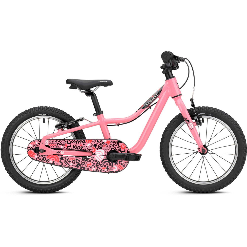 | Product | The MX16 - Big Adventures for Growing Riders Easy‐Pedal Cranks - Our pedal cranks are ergonomically correct, proportional to the child's leg length. They also place the pedals closer to the bike's centre so that children can pedal as smoothly and naturally as possible. Smaller Grips - Our handlebars and grips are narrower diameter so they fit small hands better, for confidence and control as well as better ability to reach the brakes safely. Better Brakes - Brake levers are closer to the bars and adjustable for reach to suit smaller hands, and work perfectly with our smaller diameter grips. Lowered Frames - Our frames are lower where it counts, making it easier to get on and off and increasing clearance for greater confidence. Steering Limiter - To help prevent falls when learning to co‐ordinate pedalling and cornering, the steering has a limit stop that helps avoid an over‐steering situation. For young pedallers aged 3½ to 6 years old, the MX16 is a compact package of fun that builds real riding confidence from the very first pedal stroke! Easy to adjust for a perfect fit as they grow, the MX16 is designed to keep up with your little rider every step of the way. A handy chain case keeps everything tucked neatly away - no messy chain, no fuss - while grippy tyres give young adventurers the freedom to explore paths and tracks with confidence. Whether it's a spin around the garden or a trip to the park, the MX16 makes every ride an adventure. Ready to pedal? The MX16 is ready when they are. |