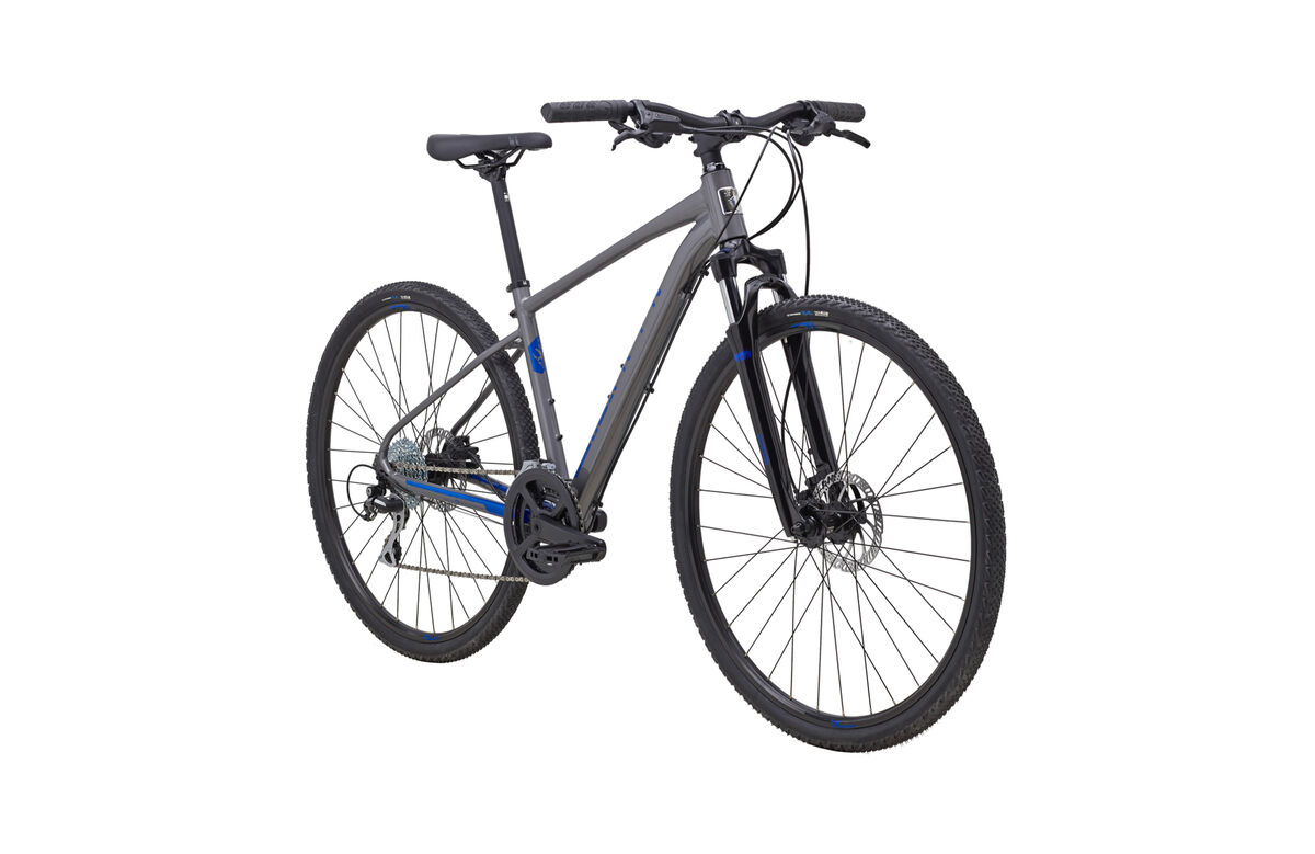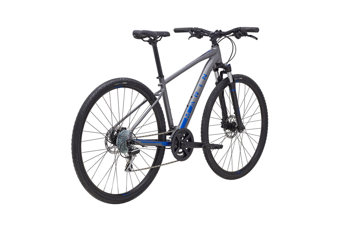 Product | The San Rafael and San Anselmo are for riders looking to explore mixed surfaces and terrain, travel the local rail-trail system, and explore paved paths and dirt doubletrack equally at home. Dual Sport bikes are a bridge between pavement and dirt, for the adventurous fitness and recreational rider. San Rafael and San Anselmo bikes are designed and built for active recreational riders looking to explore on and off paved surfaces. These models offer lightweight Series 2 6061 aluminum frames, suspension forks, Shimano drivetrains, rack and fender mounts, large-volume 700C mixed-terrain tires, and disc brakes on every model. Dual Sport geometry balances an active pedaling position with an upright seating position for fitness riding across mixed surfaces. Frame: Series 2 Dual Sport, 6061 Aluminum, 700C Wheels, Disc Brake Fork: SR Suntour NEX Disc HLO, 63mm Travel, Hydraulic Lockout, Preload Adjustment Headset: FSA No.10-P Stem: Marin Alloy, 31.8mm Clamp Handlebar: Marin Alloy Riser Grips: Marin Ergonomic Locking Brake Levers: Clark's Hydraulic Brakes Front: Clark's Clout Hydraulic Disc, 160mm Rotor Brakes Rear: Clark's Clout Hydraulic Disc, 160mm Rotor Tires: Vee Tire, Rail, 700x40, Wire Bead Rim: Marin Aluminum Double Wall, Disc Specific Hub Front: Forged Aluminum Alloy, Disc, 32H Hub Rear: Forged Aluminum Alloy, Disc, 32H Spokes: 14g Black Stainless Steel Derailleur Front: Shimano FD-TY710 Derailleur Rear: Shimano Acera 8-Speed Shift Lever: Shimano Altus SL-M315, 8-Speed Chain: KMC Z8 Cassette: SunRace 8-Speed, 11-34T Crankset: Forged Alloy Crank, 46/30T, Ring Guard Bottom Bracket: Sealed Cartridge Bearings, Square Taper Pedals: Dual Sport Platform Saddle: Marin Fitness Plush Seatpost: Marin Alloy, 27.2mm |