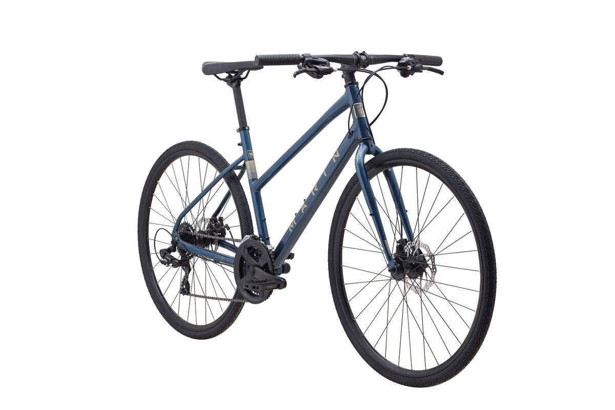 Product | The Fairfax line of bikes has the speed of a road bike with a more comfortable upright position for meeting your weekly riding goals. The Fairfax line of fitness bikes have the speed of a road bike with a more comfortable upright position for meeting your weekly riding goals. Built with weekend bike path and weekday fitnessriders in mind, the Fairfax bikes are equally at home on shorter after work rides or longer weekend adventures. Disc brakes provide sure stopping power in all conditions, and all frames feature rack and fender mounts for commuter use. Frame: Series 1 Fitness, Step-Thru Design, 6061 Aluminum, 700C Wheels, Disc Brake, Internal Cable Routing, Fender, Rack and Kickstand Mounts Fork: Cr-Mo Steel, Straight Blade, Disc Mount, QR Dropouts, Fender and Rack Eyelets Headset: FSA, Threadless Stem: Marin Alloy Threadless Handlebar: Marin Alloy Flat, 31.8mm Grips: Marin Commute Brake Levers: Shimano w/ Integrated Shifters Brakes Front: Clark's CMD-23 Mechanical Disc, Shimano Pad Compatible, 160mm Rotor Brakes Rear: Clark's CMD-23 Mechanical Disc, Shimano Pad Compatible, 160mm Rotor Tires: Fitness 700Cx35mm Rim: Marin Aluminum Double Wall, Disc Specific Hub Front: Forged Aluminum Alloy, Disc, 32H Hub Rear: Forged Aluminum Alloy, Disc, 32H Spokes: 14g Stainless Steel Derailleur Front: Shimano TY510 Derailleur Rear: Shimano Tourney, 7-Speed Shift Lever: Shimano Shifter/Brake Lever Combo, 3x7-Speed Chain: KMC Z8 Cassette: Shimano CSHG200, 7-Speed, 12-32T Crankset: Alloy Crank, Steel Chainrings, 48/38/28T, Ring Guard Bottom Bracket: Sealed Cartridge Bearings, Square Taper Pedals: Nylon Platform Saddle: Marin Fitness Plush Seatpost: Marin Alloy, 27.2mm |