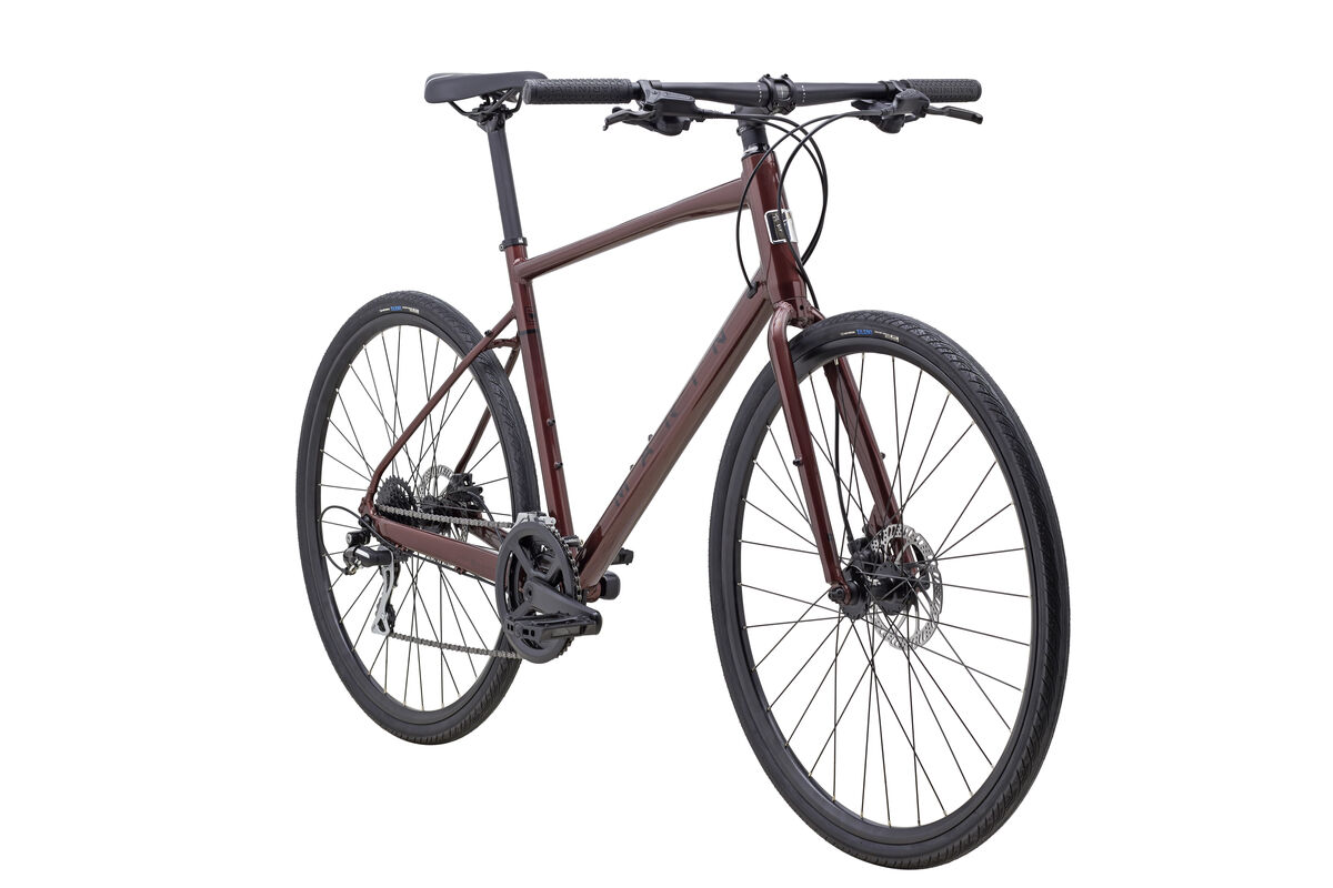 Product | The Fairfax line of bikes has the speed of a road bike with a more comfortable upright position for meeting your weekly riding goals. The Fairfax line of fitness bikes have the speed of a road bike with a more comfortable upright position for meeting your weekly riding goals. Built with weekend bike path and weekday fitnessriders in mind, the Fairfax bikes are equally at home on shorter after work rides or longer weekend adventures. Disc brakes provide sure stopping power in all conditions, and all frames feature rack and fender mounts for commuter use. Frame: Series 2 Fitness, 6061 Aluminum, 700C Wheels, Internal Cable Routing,Disc Specific Forged QR Dropouts, Rear Kickstand Mount, Fender and Rack Mounts Fork: 6061 Aluminum, Straight-Blade, Disc Mount, QR Dropouts, Fender and Rack Eyelets Headset: FSA, No.8B Stem: Marin 3D Forged Alloy Handlebar: Marin Alloy Flat, 31.8mm Grips: Marin Ergonomic Locking Brake Levers: Clark's Hydraulic Brakes Front: Clark's Clout Hydraulic Disc, 160mm Rotor Brakes Rear: Clark's Clout Hydraulic Disc, 160mm Rotor Tires: Vee Tire, Zilent, 700Cx35mm, Puncture Protection, Wire Bead Rim: Marin Aluminum Double Wall, Disc Specific Hub Front: Forged Aluminum Alloy, Disc, 32H Hub Rear: Forged Aluminum Alloy, Disc, 32H Spokes: 14g Black Stainless Steel Derailleur Front: Shimano TY710 Derailleur Rear: Shimano Acera, 8-Speed Shift Lever: Shimano Altus 2x8 Chain: KMC Z8 Cassette: SunRace 8-Speed, 11-34T Crankset: Forged Alloy Crank, 46/30T, Ring Guard Bottom Bracket: Sealed Cartridge Bearings, Square Taper Pedals: Nylon Platform Saddle: Marin Fitness Plush Seatpost: Marin Alloy, 27.2mm |