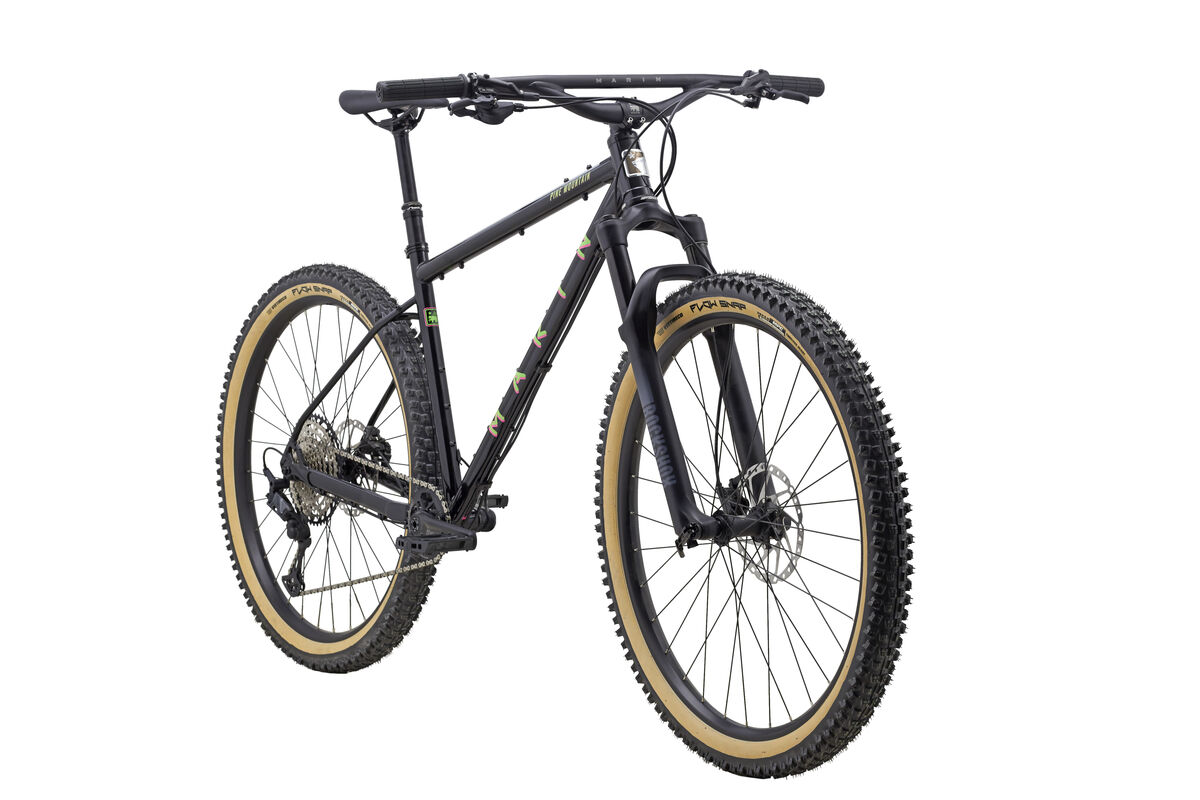 Product | The Pine Mountain is a classic steel hardtail with modern trail capabilities for hardtail purists pushing the limits and seeking adventure. The Marin Pine Mountain is a fresh take on what an adventure trail bike should be capable of. The Series 2 and Series 3 CrMo frames have been constructed around 29x2.6" wheels/tires, with geometry blending the stability and raucous fun of aggressive trail geometry with all day comfort and pedalability for a wide variety of trail. A plethora of eyelets on the frame and the Bedroll Bar let you customize your bike and gear to each and every adventure, and wide-range drivetrains and sturdy trail suspension forks make sure you can get out and back with a smile and a story worth telling. Frame: Series 3 Double Butted and Heat Treated CrMo, 29" Wheels, Custom Cast Boost 148x12mm Dropouts, 148x12mm Thru-Axle, 73mm Threaded BB, Plentiful Gear Mounts Fork: RockShox 35 Gold RL, 120mm Travel, DebonAir, Alloy Tapered Steerer, 110x15mm Boost Spacing, Maxle Lite, 44mm Offset Headset: FSA Orbit ITA, Sealed Cartridge Bearings, 1 1/8" x 1 1/2" Stem: Marin 3D Forged Alloy, 35mm Handlebar: Marin Bedroll Bar, 50mm Rise, 780 Width, 10? Backsweep, 6? Upsweep Grips: Marin Grizzly Lock On Brake Levers: TRP Slate EVO Brakes Front: TRP Slate EVO, 4-Piston, Hydraulic Disc, 180mm Rotor Brakes Rear: TRP Slate EVO, 4-Piston, Hydraulic Disc, 180mm Rotor Tires: Vee Tire Flow Snap, 29x2.6", Top 40 Compound, Enduro Core, 90 TPI, Tubeless Compatible Rim: Alloy Double-Wall, Offset Spoke, 32mm ID, Tubeless Compatible Hub Front: Forged Alloy, 110x15mm, Sealed Cartridge Bearings, Disc Specific, 32H Hub Rear: Shimano, Micro Spline 148x12mm, Disc Specific, 32H Spokes: 14g Black Stainless Steel Derailleur Rear: Shimano SLX, RD7100, 12-Speed Shift Lever: Shimano SLX, SL7100, 12-Speed Chain: KMC X12 Cassette: Sunrace, 12-Speed, MicroSpline, 10-51T Crankset: FSA Grid, Modular 1x, 32T Direct Mount MegaTooth Chainring Bottom Bracket: FSA Outboard Cartridge Bearings Pedals: Nylon Platform Saddle: Marin Pine Mountain Trail Seatpost: TranzX, YSP23JL, 1x Remote, Size S 125mm Travel, All Other Sizes 150mm Travel, 30.9mm |