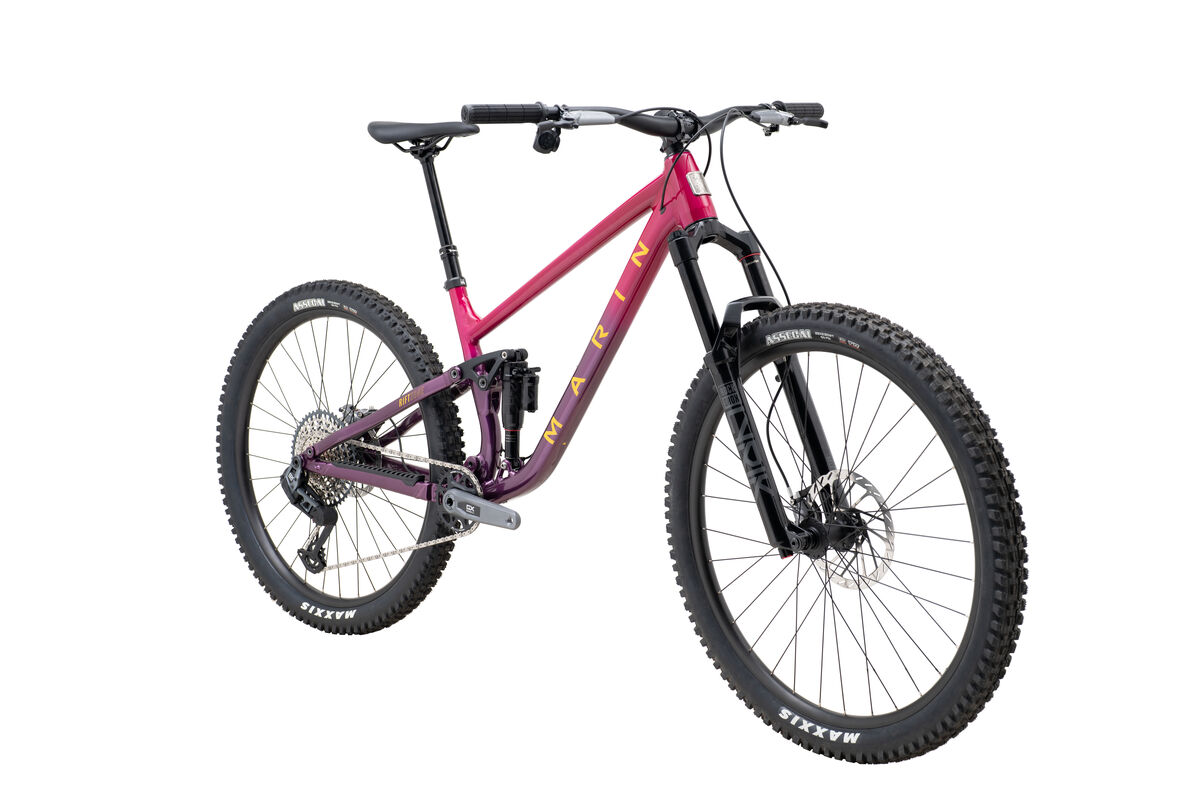 Product | The Rift Zone 29 brings together trail-taming 29" wheels, 130mm of rear travel, a lightweight aluminum frame and our super-plush MultiTrac suspension platform for endless good times on the trails. "XR" means Extra Rad over here at Marin, and with that, the Rifty XR gets an extra spicy build. Starting out front, the fork is RockShox's supreme Lyrik Select+ model, now sporting 150mm of travel. Not wanting to leave the rear in the lurch, the Super Deluxe Select+ shock balances out the bouncy bits. SRAM's wide-range 12-speed GX Eagle drivetrain helps get the power to the rear wheel, while SB8 4-piston brakes offer impeccable braking performance. The Rift Zone 29 brings together trail-taming 29" wheels, 130mm of rear travel, a lightweight aluminum frame and our super-plush MultiTrac suspension platform for endless good times on the trails. "XR" means Extra Rad over here at Marin, and with that, the Rifty XR gets an extra spicy build. Starting out front, the fork is RockShox's supreme Lyrik Select+ model, now sporting 150mm of travel. Not wanting to leave the rear in the lurch, the Super Deluxe Select+ shock balances out the bouncy bits. SRAM's wide-range 12-speed GX Eagle drivetrain helps get the power to the rear wheel, while SB8 4-piston brakes offer impeccable braking performance. Frame: Series 3 6061 Aluminum Frame, 29" Wheels, 130mm Travel, MultiTrac Suspension Platform, 148x12mm Boost Thru-Axle, 73mm Threaded BB w/ ISCG05 Tabs Rear Suspension: Rock Shox Super Deluxe Select +, 210x55mm, 25xM8 Hardware, Custom Tune Fork: Rock Shox Lyrik Select +, 150mm Travel, 29" wheels, 110x15 Maxle Stealth, 42mm Offset Headset: FSA No 57, Sealed Cartridge Bearings, 1 1/8" x 1 1/2" Stem: Marin CNC Stem, 35mm Length, 35mm Bar Bore Handlebar: Marin Trail Bar, 35mm Clamp, 7000 Alloy Bar, 800mm Length, 20mm Rise, 5 Degree Up, 8 Degree Back Grips: Marin Grizzly Lock-On Brake Levers: Sram Code Bronze Hydraulic Disc Brakes Brakes Front: Sram Code Bronze 4-Piston Hydraulic Disc Brakes, HSC 200mm Rotor Brakes Rear: Sram Code Bronze 4-Piston Hydraulic Disc Brakes, HSC 180mm Rotor Tires: Maxxis Assegai, 29x2.5", MAXX TERAA, EXO, Tubeless Compatible Rim: Marin Aluminum Double Wall, 29mm Inner, Sleeved Joint, Disc Specific, 32H, Tubeless Compatible Hub Front: Formula, DC-711, 110x15mm, 6-Bolt Disc, 32h Hub Rear: Formula, DCL-3482, 148x12, 4 Sealed Bearings, 6-Bolt Disc, XD Driver, 32H Spokes: 14g Black Stainless Steel Derailleur Rear: Sram GX EAGLE AXS T-Type Shift Lever: Sram AXS POD MMX Chain: Sram GX Eagle T-Type Cassette: Sram GX 1275 T-Type 10-52T Crankset: Sram GX Eagle, 32T, 55MM CL, 170MM Length Bottom Bracket: Sram DUB MTB 73 Pedals: - Saddle: Marin Speed Concept Seatpost: TranzX, YSP23JL, 1x Remote, Size S 150mm Travel, Size M and L 170mm Travel, Size XL 200mm Travel, 30.9mm Extra1: Bolt-On 12mm Thru-Axle, 174mm Length, 1.0 Thread Pitch, 16.5mm, Tapered Head |