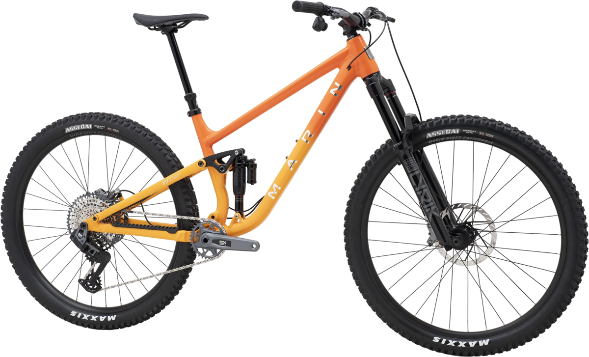 Product | The Rift Zone 29 brings together trail-taming 29" wheels, 130mm of rear travel, a lightweight aluminum frame and our super-plush MultiTrac suspension platform for endless good times on the trails. "XR" means Extra Rad over here at Marin, and with that, the Rifty XR gets an extra spicy build. Starting out front, the fork is RockShox's supreme Lyrik Select+ model, now sporting 150mm of travel. Not wanting to leave the rear in the lurch, the Super Deluxe Select+ shock balances out the bouncy bits. SRAM's wide-range 12-speed GX Eagle drivetrain helps get the power to the rear wheel, while SB8 4-piston brakes offer impeccable braking performance. The Rift Zone 29 brings together trail-taming 29" wheels, 130mm of rear travel, a lightweight aluminum frame and our super-plush MultiTrac suspension platform for endless good times on the trails. "XR" means Extra Rad over here at Marin, and with that, the Rifty XR gets an extra spicy build. Starting out front, the fork is RockShox's supreme Lyrik Select+ model, now sporting 150mm of travel. Not wanting to leave the rear in the lurch, the Super Deluxe Select+ shock balances out the bouncy bits. SRAM's wide-range 12-speed GX Eagle drivetrain helps get the power to the rear wheel, while SB8 4-piston brakes offer impeccable braking performance. Frame: Series 3 6061 Aluminum Frame, 29" Wheels, 130mm Travel, MultiTrac Suspension Platform, 148x12mm Boost Thru-Axle, 73mm Threaded BB w/ ISCG05 Tabs Rear Suspension: Rock Shox Super Deluxe Select +, 210x55mm, 25xM8 Hardware, Custom Tune Fork: Rock Shox Lyrik Select +, 150mm Travel, 29" wheels, 110x15 Maxle Stealth, 42mm Offset Headset: FSA No 57, Sealed Cartridge Bearings, 1 1/8" x 1 1/2" Stem: Marin CNC Stem, 35mm Length, 35mm Bar Bore Handlebar: Marin Trail Bar, 35mm Clamp, 7000 Alloy Bar, 800mm Length, 20mm Rise, 5 Degree Up, 8 Degree Back Grips: Marin Grizzly Lock-On Brake Levers: Sram Code Bronze Hydraulic Disc Brakes Brakes Front: Sram Code Bronze 4-Piston Hydraulic Disc Brakes, HSC 200mm Rotor Brakes Rear: Sram Code Bronze 4-Piston Hydraulic Disc Brakes, HSC 180mm Rotor Tires: Maxxis Assegai, 29x2.5", MAXX TERAA, EXO, Tubeless Compatible Rim: Marin Aluminum Double Wall, 29mm Inner, Sleeved Joint, Disc Specific, 32H, Tubeless Compatible Hub Front: Formula, DC-711, 110x15mm, 6-Bolt Disc, 32h Hub Rear: Formula, DCL-3482, 148x12, 4 Sealed Bearings, 6-Bolt Disc, XD Driver, 32H Spokes: 14g Black Stainless Steel Derailleur Rear: SRAM GX Eagle AXS T-Type Shift Lever: Sram AXS POD MMX Chain: Sram GX Eagle T-Type Cassette: Sram GX 1275 T-Type 10-52T Crankset: Sram GX Eagle, 32T, 55MM CL, 170MM Length Bottom Bracket: Sram DUB MTB 73 Pedals: - Saddle: Marin Speed Concept Seatpost: TranzX, YSP23JL, 1x Remote, Size S 150mm Travel, Size M and L 170mm Travel, Size XL 200mm Travel, 30.9mm |