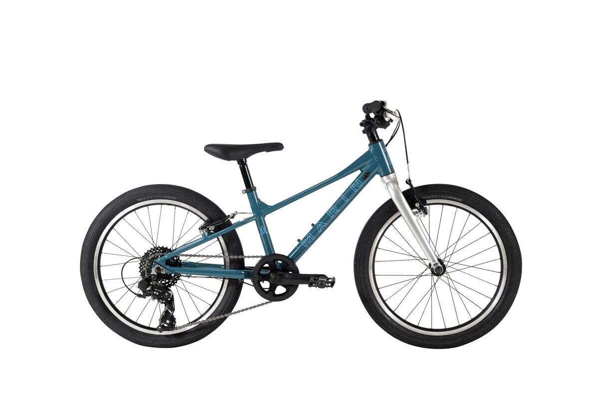 A kid's first Marin. Our neighborhood bikes are designed with young riders in mind. All models feature lightweight aluminum frames, kids-sized components such as short reach brake levers and scaled down grips, saddles and pedals. Smooth tread tires roll efficiently, while strong linear pull brakes stop on the proverbial dime.