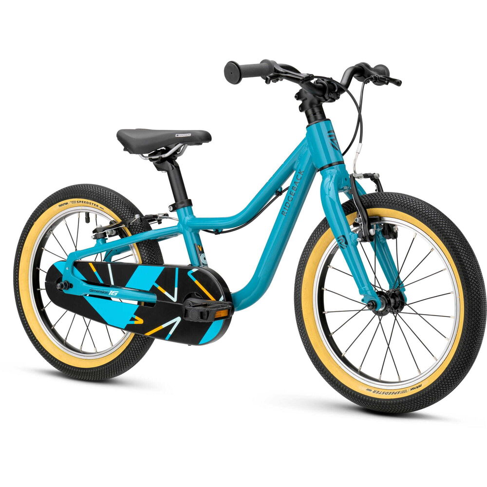 | Product | Dimension 16 - Lightweight Fun for Growing Riders Easy-Pedal Cranks - Our pedal cranks are ergonomically correct, proportional to the child's leg length. They also place the pedals closer to the bike's centre so that children can pedal as smoothly and naturally as possible. Smaller Grips - Our handlebars and grips are narrower diameter so they fit small hands better, for confidence and control as well as better ability to reach the brakes safely. Faster Tyres - Special edition Nutrak by Vee Speedsters with puncture resistantance. Lowered Frames - Our frames are lower where it counts, making it easier to get on and off and increasing clearance for greater confidence. Steering Limiter - To help prevent falls when learning to co-ordinate pedalling and cornering, the steering has a limit stop that helps avoid an over-steering situation. For young pedallers aged 3½ to 6 years old, the lightweight Dimension 16 is a compact package of fun that builds real riding confidence from the very first pedal stroke! Designed with a light aluminium frame, fork and parts, the Dimension 16 is that little bit easier to manage - making every ride smoother, easier and more enjoyable for your little one. Easy to adjust for a perfect fit as they grow, the Dimension 16 is built to keep up with your little rider every step of the way. A handy chain case keeps everything tucked neatly away - no messy chain, no fuss - while easy-rolling tyres help young adventurers make smooth progress along paths and tracks with confidence. Ready to pedal? The Dimension 16 is ready when they are. |