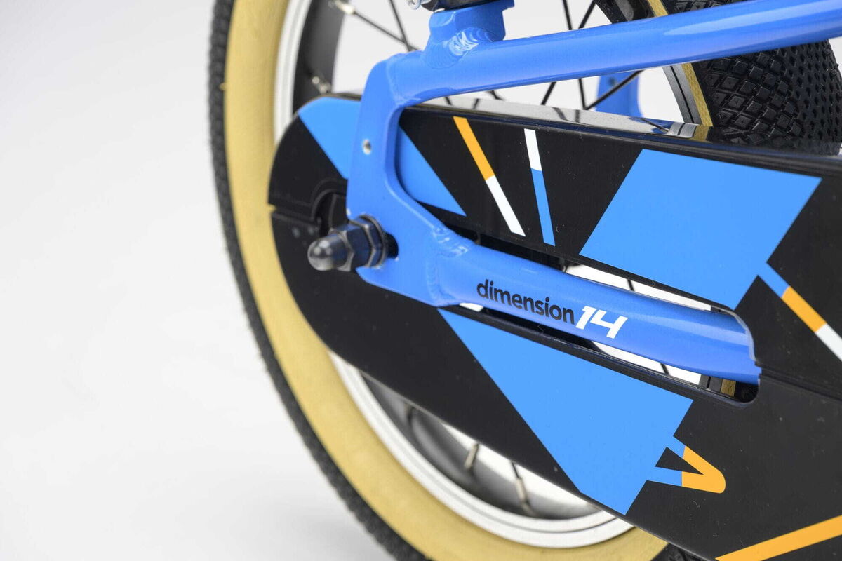| Product | Dimension 14 - Lightweight Fun for Early Pedallers Easy‐Pedal Cranks - Our pedal cranks are ergonomically correct, proportional to the child's leg length. They also place the pedals closer to the bike's centre so that children can pedal as smoothly and naturally as possible. Smaller Grips - Our handlebars and grips are narrower diameter so they fit small hands better, for confidence and control as well as better ability to reach the brakes safely. Faster Tyres ‐ Special edition Nutrak by Vee Speedsters with puncture resistantance. Lowered Frames - Our frames are lower where it counts, making it easier to get on and off and increasing clearance for greater confidence. Steering Limiter - To help prevent falls when learning to co‐ordinate pedalling and cornering, the steering has a limit stop that helps avoid an over‐steering situation. For the earliest pedallers aged 2½ to 4 years old, the lightweight Dimension 14 is a compact package of fun that builds real riding confidence from the very first pedal stroke! Designed with a light aluminium frame, fork and parts, the Dimension 14 is that little bit easier to manage - making every ride smoother, easier and more enjoyable for your little one. Easy to adjust for a perfect fit as they grow, the Dimension 14 is built to keep up with your little rider every step of the way. A handy chain case keeps everything tucked neatly away - no messy chain, no fuss - while easy‐rolling tyres help little adventurers make smooth progress along paths and tracks with confidence. Ready to pedal? The Dimension 14 is ready when they are. |