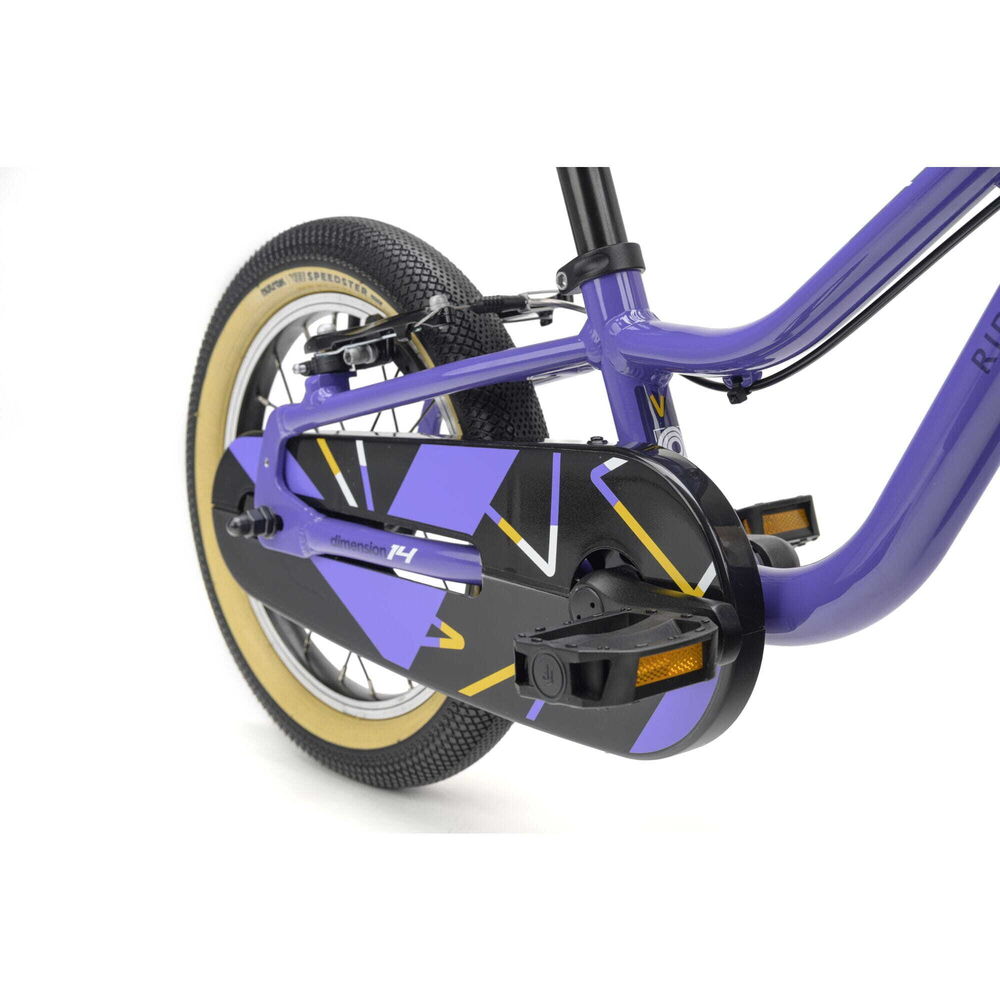 | Product | Dimension 14 - Lightweight Fun for Early Pedallers Easy-Pedal Cranks - Our pedal cranks are ergonomically correct, proportional to the child's leg length. They also place the pedals closer to the bike's centre so that children can pedal as smoothly and naturally as possible. Smaller Grips - Our handlebars and grips are narrower diameter so they fit small hands better, for confidence and control as well as better ability to reach the brakes safely. Faster Tyres - Special edition Nutrak by Vee Speedsters with puncture resistantance. Lowered Frames - Our frames are lower where it counts, making it easier to get on and off and increasing clearance for greater confidence. Steering Limiter - To help prevent falls when learning to co-ordinate pedalling and cornering, the steering has a limit stop that helps avoid an over-steering situation. For the earliest pedallers aged 2½ to 4 years old, the lightweight Dimension 14 is a compact package of fun that builds real riding confidence from the very first pedal stroke! Designed with a light aluminium frame, fork and parts, the Dimension 14 is that little bit easier to manage - making every ride smoother, easier and more enjoyable for your little one. Easy to adjust for a perfect fit as they grow, the Dimension 14 is built to keep up with your little rider every step of the way. A handy chain case keeps everything tucked neatly away - no messy chain, no fuss - while easy-rolling tyres help little adventurers make smooth progress along paths and tracks with confidence. Ready to pedal? The Dimension 14 is ready when they are. |