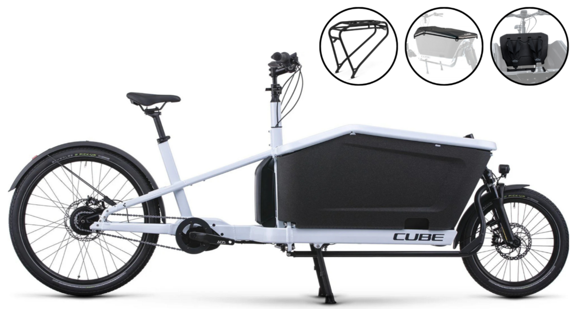 Product Fork: SR Suntour MOBIE CARGO 80mmHeadset: Cube H835D3 semi-integrated with sealed bearings and Cane Creek ViscosetStem: BySchulz Speedlifter ClassicHandlebar: CUBE Comfort Trail Bar 680mmGrips: ACID Travel Comfort GripshiftShifters: Enviolo Cargo manualBrake system: Magura CMe Hydr. Disc Brake (180/203)Crankset: ACID E-Crank 170mm 38TCrankset chainring sizes: 38TCassette: Enviolo 20TNumber of gears: 999Chain: KMC Z610Rims: CUBE EX30 32H Disc Tubeless ReadyFront hub: Shimano HB-MT400 15x100mm CenterlockRear hub: Enviolo Cargo380% 10x135mmFront tire: Schwalbe Pick-Up Super Defense 60-406Rear tire: Schwalbe Pick-Up Super Defense 65-584Pedals: CUBE PP MTBSaddle: Natural Fit Sequence ComfortSeat post: Newmen Evolution 30.9mmSeat post = dropper Yes/No: YesSeat post clamp: CUBE Varioclose 34.9mmFront light: ACID Front Light PRO-E 110 5-16V DCRear light: ACID Mudguard Rear Light PRO-E 12V DCKickstand: Cargo KickstandMudguard: ACID 75Bell: Ring BellEngine: Bosch Drive Unit Cargo Line Generation 4 (85Nm) Cruise (250Watt)Battery: Bosch PowerPack 500Charger: Bosch 2ADisplay: Bosch Intuvia
