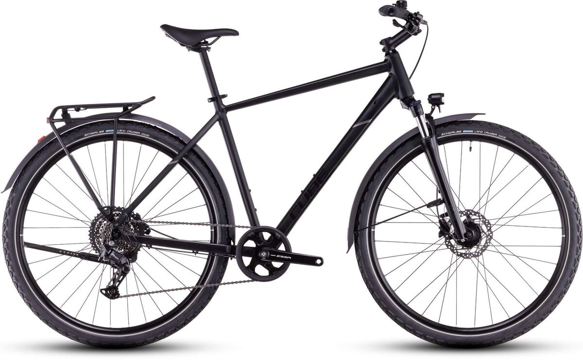 Product | Combining the comfort and versatility of our Nature series with the practicality of a full complement of accessories the Nature ONE Allroad is the bike that can do it all. Full-length mudguards a sturdy luggage carrier kickstand and dynamo-powered lighting system ensure you're fully set up for anything from the urban jungle to countryside tours. And the comfortable Suntour suspension fork easy-to-use Shimano Essa 1x8 gears and powerful hydraulic disc brakes ensure you'll get to your destination in comfort and safety. Where will your next ride take you? Frame description The heart of a great bicycle is a great frame. For the Nature Allroad we began with double-butted aluminium tubes - which save weight without affecting strength - and used Smooth Welding at the main tube joints for an elegant finish. The result is a light lively and comfortable frame that easily passes our stringent in-house safety tests. There's plenty of clearance for wide tyres and we added a full set of accessories - including lighting set mudguards luggage carrier and kickstand - so you're all set for any ride. The heart of a great bicycle is a great frame. For the Nature Allroad we began with double-butted aluminium tubes - which save weight without affecting strength - and used Smooth Welding at the main tube joints for an elegant finish. The result is a light lively and comfortable frame that easily passes our stringent in-house safety tests. There's plenty of clearance for wide tyres and we added a full set of accessories - including lighting set mudguards luggage carrier and kickstand - so you're all set for any ride. Frame: Aluminium Superlite Trekking Cross Taper Double Butted Fork: SR Suntour NEX HLO 63mm Lockout Headset: VP Integrated Top 1 1/8" Bottom 1 1/2" Stem: CUBE Performance Stem Pro 31.8mm Handlebar: CUBE Comfort Trail Bar 700mm Grips: ACID Travel Comfort Rear derailleur: Shimano Essa RD-U2000-GS 8-Speed Shifters: Shimano SL-M315 Rapidfire-Plus Brake system: Shimano BR-MT200 Hydr. Disc Brake (160/160) Bottom Bracket: Thun Paso-ML 68mm BSA Crankset: Shimano Essa FC-U2000-1 40T Crankset chainring sizes: 40T Cassette: Shimano CS-HG400 11-45T Number of gears: 8 Chain: KMC Z8 Rims: CUBE EX25 32H Disc Front hub: Shimano DH-3D37 Hub Dynamo QR Centerlock Rear hub: Shimano FH-QC300-HM QR Centerlock Tires: Schwalbe Land Cruiser Active 50-622 Pedals: CUBE PP MTB Saddle: ACID Sequence Pro 160 Seat post: CUBE Performance Post 27.2mm Seat post = dropper Yes/No: NO Seat post clamp: CUBE Varioclose 31.8mm Front light: CUBE Shiny 50 Rear light: ACID Mudguard Rear Light PRO-D 6V AC Kickstand: CUBEstand Cmpt Mudguard: ACID 65 BB-Mount Bell: Easy Bell Carrier: ACID Semi-Integrated Carrier ACID RILink Adapter Compatible |