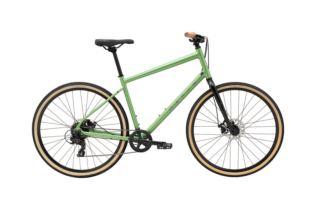 Product | The Kentfield is a retro-modern, stylish, yet affordable bike that can do it all, the new Kentfield is ready to take you to school, the bike path, or through the back alleys to B-line to a coffee date. The Kentfield is a hybrid blend of speed for efficient riding and the upright and confident position of a mountain bike, built for short to medium distance commutes and bike path fun rides with multi-terrain tires and full rack and fender mounts. The Kentfield adds the possibility of further exporation outside of your regular commutes or path cruising. Wide-range and simple single chainring drivetrains and lightweight Series 1 aluminum frames available in standard or step-through versions make the Kentfield a line of comfortable and sporty bikes for an active lifestyle. Frame: Series 1 City + Sport, 6061 Aluminum, 700C Wheels, Step Through Design, Fender and Rack Mounts Fork: Steel, Moto Blade, Disc Specific, Fender and Rack Eyelets Headset: FSA 888 Threadless Stem: Marin Aluminum, 31.8mm Clamp Handlebar: Marin Alloy, 30mm Rise, 12? Backsweep Grips: Marin Adventure Brake Levers: Aluminum Lever Brakes Front: Clark's CMD-23 Mechanical Disc, Shimano Pad Compatible, 160mm Rotor Brakes Rear: Clark's CMD-23 Mechanical Disc, Shimano Pad Compatible, 160mm Rotor Tires: Vee Tire, GPVee, 700x40, Wire Bead, Flat Protection, Mixed Terrain Ready Rim: Marin Aluminum Double Wall, Disc Specific Hub Front: Forged Aluminum Alloy, 32H Hub Rear: Forged Aluminum Alloy, 32H Spokes: 14g Stainless Steel Derailleur Rear: Shimano Tourney 7-Speed Shift Lever: Shimano Altus 7-Speed RapidFire Chain: KMC Z8 Cassette: Shimano CSHG200, 7-Speed, 12-32T Crankset: Forged Alloy Crank, Steel 38T Chainring, Ring Guard Bottom Bracket: Sealed Cartridge Bearings, Square Taper Pedals: Nylon Platform Saddle: Marin Adventure Plush Seatpost: Marin Alloy, 27.2mm |